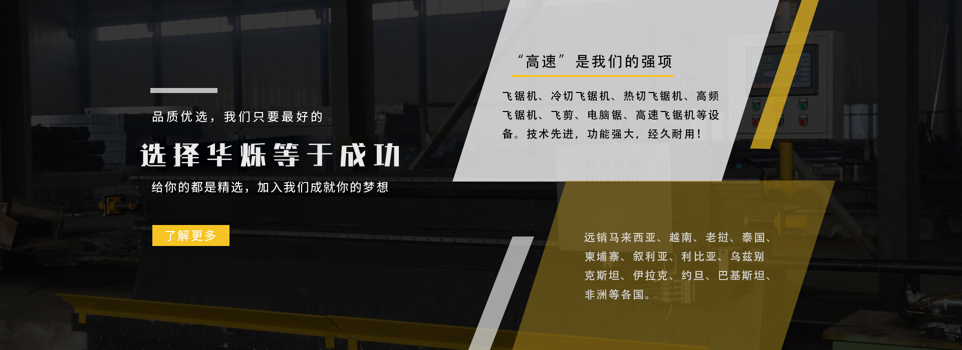 廊坊華爍自動(dòng)化設(shè)備有限公司以誠信交朋友、服務(wù)求生存、技術(shù)求發(fā)展為宗旨,多年來專注研制、生產(chǎn)、銷售高頻焊管生產(chǎn)線輔機(jī)——數(shù)控高頻冷切飛鋸機(jī)為主線,為國內(nèi)外客戶提供高品質(zhì)的需求產(chǎn)品。如:飛鋸機(jī)、冷切飛鋸機(jī)、熱切飛鋸機(jī)、高頻飛鋸機(jī)、飛剪、電腦鋸、高速飛鋸機(jī)等設(shè)備。 廊坊華爍超過多年的技術(shù)經(jīng)驗(yàn)和研發(fā)能量累積,有強(qiáng)大的系統(tǒng)集成能力,專門為用戶提供量身定制的控制方案,并承攬依用戶需求來開發(fā)設(shè)計(jì)符合機(jī)械要求的新型生產(chǎn)系統(tǒng)。 華爍生產(chǎn)的產(chǎn)品暢銷國內(nèi)各省,遠(yuǎn)銷馬來西亞、越南、老撾、泰國、柬埔寨、敘利亞、利比亞、烏茲別克斯坦、伊拉克、約旦、巴基斯坦、非洲等各國。 華爍擁有售后服務(wù)技術(shù)人員,具有服務(wù)上千家客戶的實(shí)戰(zhàn)經(jīng)驗(yàn),可提供視頻指導(dǎo)或現(xiàn)場技術(shù)安裝指導(dǎo)...